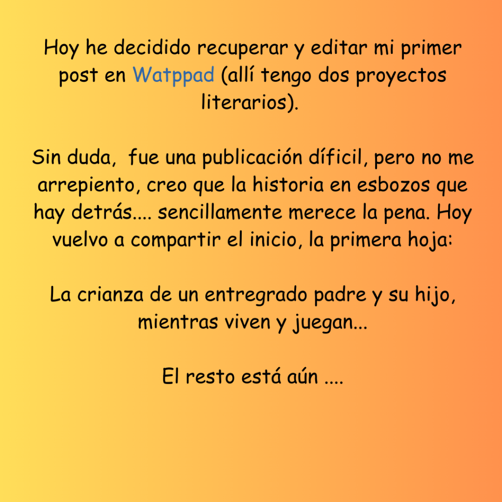 Hoy recupero la primera página de esta historia, mi primera publicación en Watpadd: